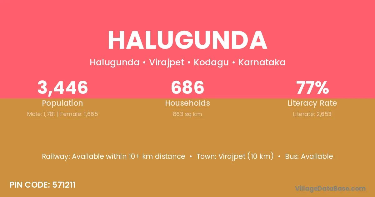 Virajpet (10 km) is the nearest town to Halugunda village for major economic activities and is located approximately 10 km away.