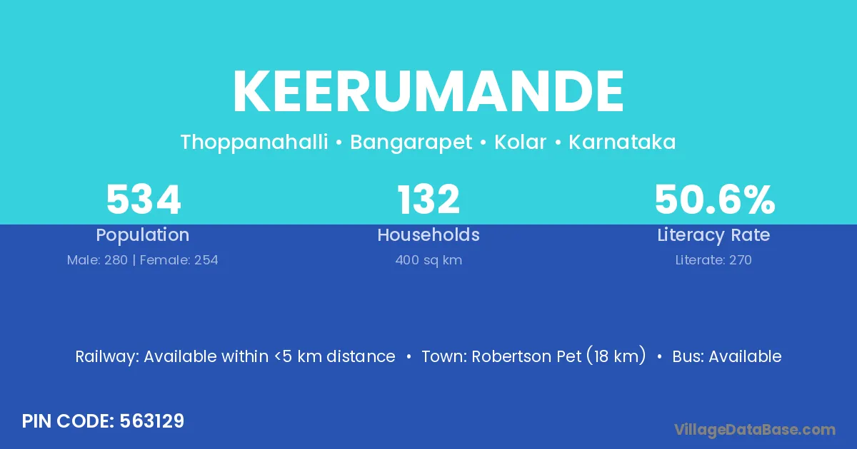 Robertson Pet (18 km) is the nearest town to Keerumande village for major economic activities and is located approximately 18 km away.