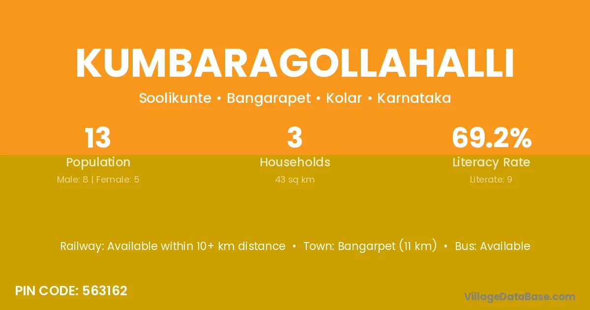 Kumbaragollahalli village has a total population of 13 people, of which 8 are males and 5 are females.