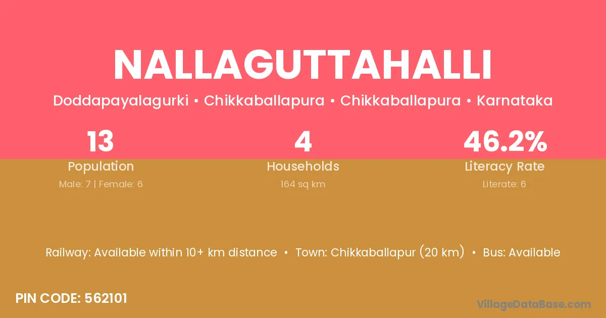 Robertson Pet (11 km) is the nearest town to Nallaguttahalli village for major economic activities and is located approximately 11 km away.