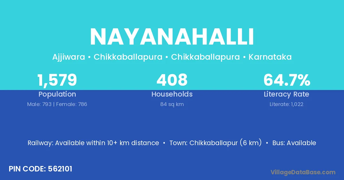 Mulbagal (17 km) is the nearest town to Nayanahalli village for major economic activities and is located approximately 17 km away.