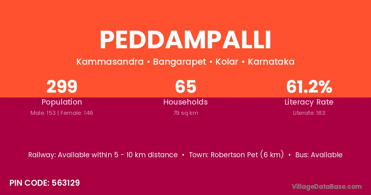 Robertson Pet (6 km) is the nearest town to Peddampalli village for major economic activities and is located approximately 6 km away.