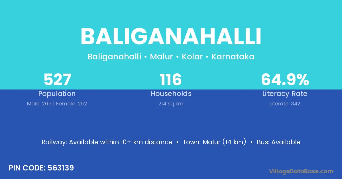 Baliganahalli village has a total population of 527 people, of which 265 are males and 262 are females.
