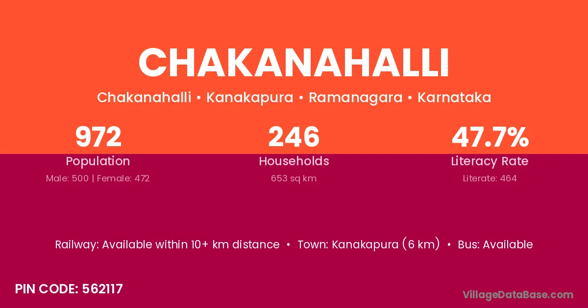 Malur (9 km) is the nearest town to Chakanahalli village for major economic activities and is located approximately 9 km away.