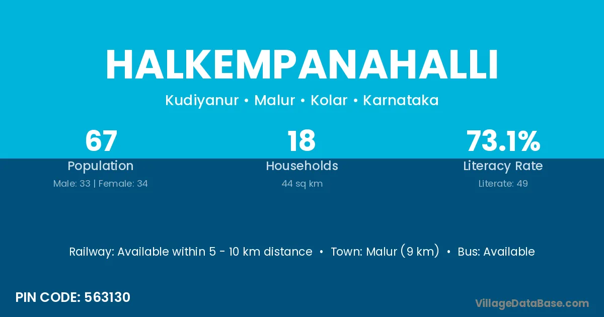 Halkempanahalli village has a total population of 67 people, of which 33 are males and 34 are females.