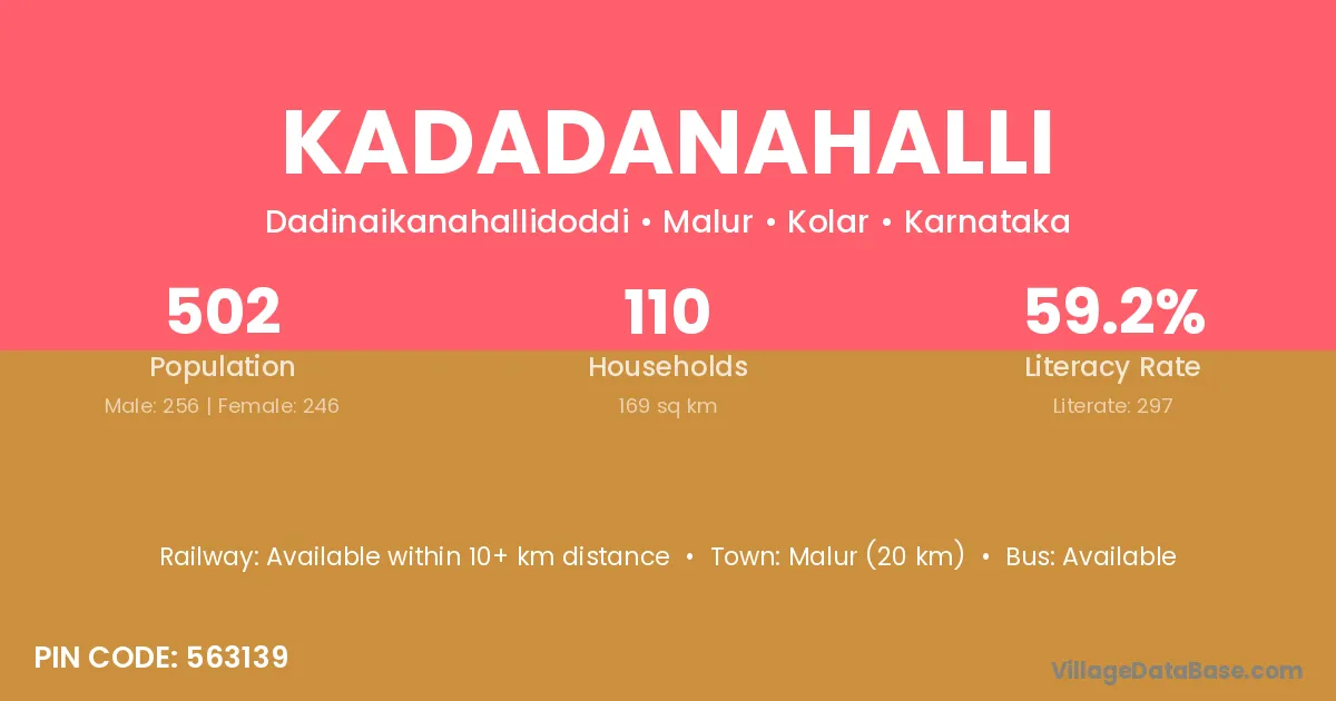 Malur (20 km) is the nearest town to Kadadanahalli village for major economic activities and is located approximately 20 km away.