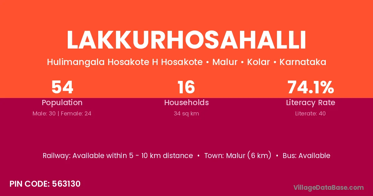 Malur (6 km) is the nearest town to Lakkurhosahalli village for major economic activities and is located approximately 6 km away.