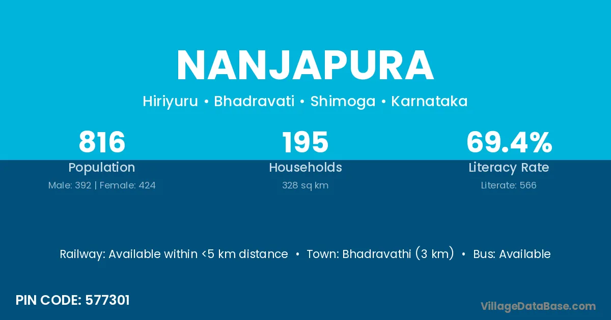Malur (16 km) is the nearest town to Nanjapura village for major economic activities and is located approximately 16 km away.
