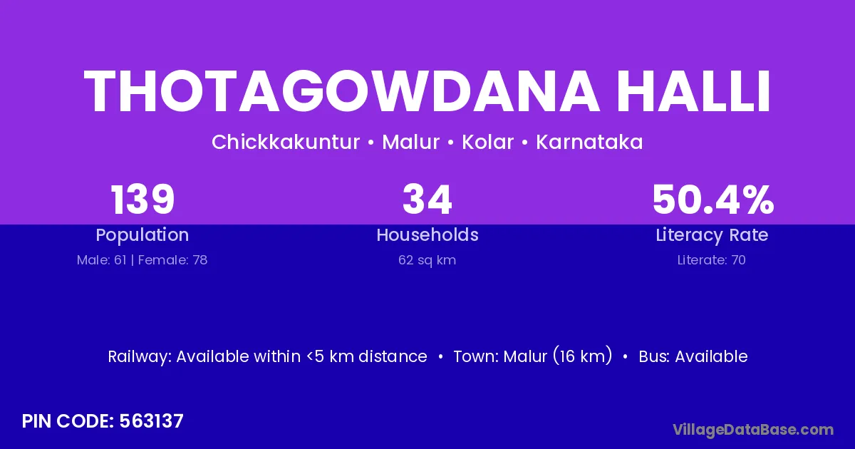 Malur (16 km) is the nearest town to Thotagowdana Halli village for major economic activities and is located approximately 16 km away.