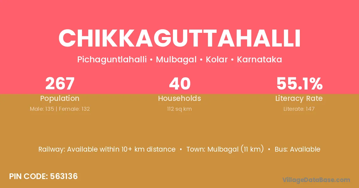 Mulbagal (11 km) is the nearest town to Chikkaguttahalli village for major economic activities and is located approximately 11 km away.