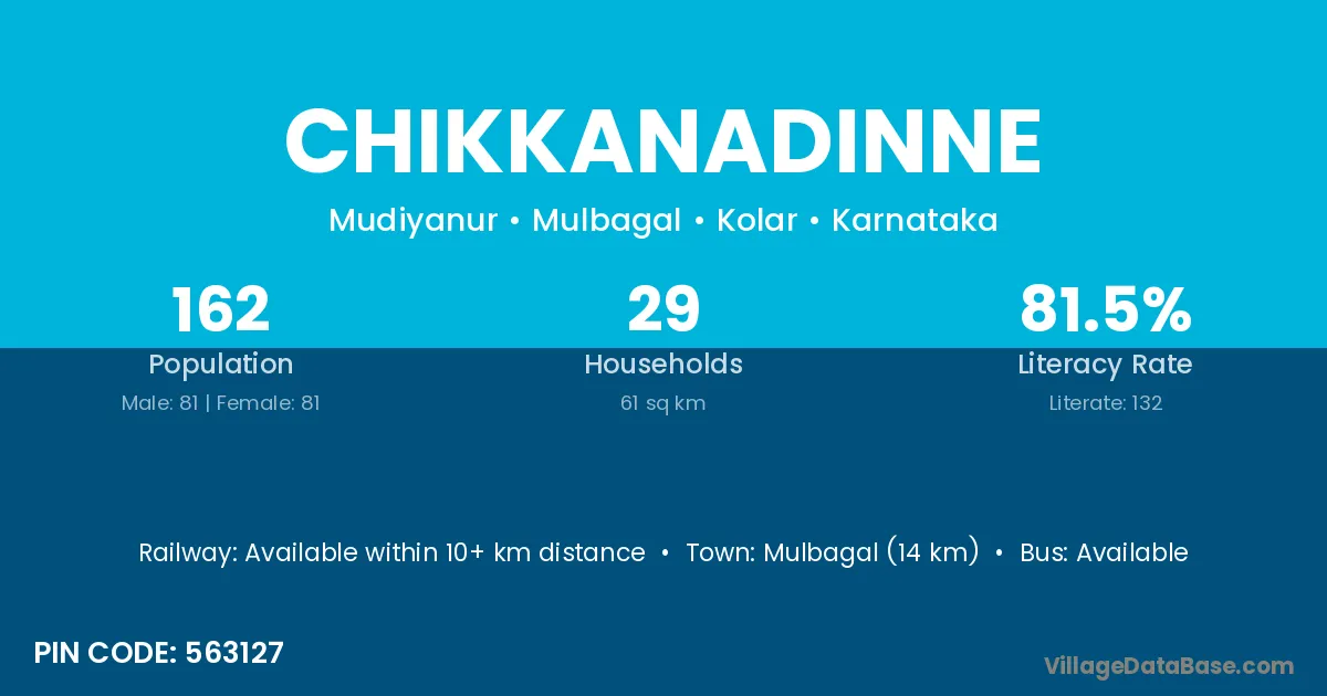 Mulbagal (14 km) is the nearest town to Chikkanadinne village for major economic activities and is located approximately 14 km away.