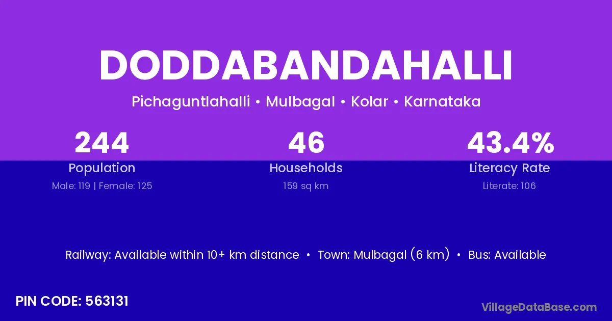 Mulbagal (6 km) is the nearest town to Doddabandahalli village for major economic activities and is located approximately 6 km away.