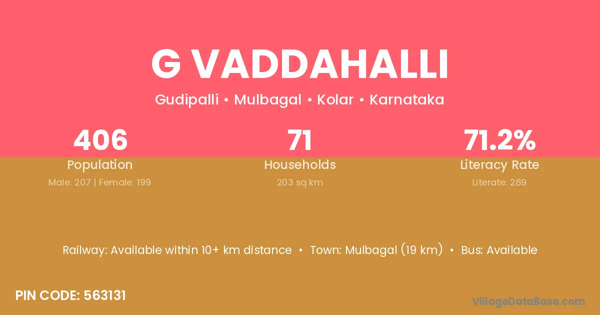 G Vaddahalli village has a total population of 406 people, of which 207 are males and 199 are females.
