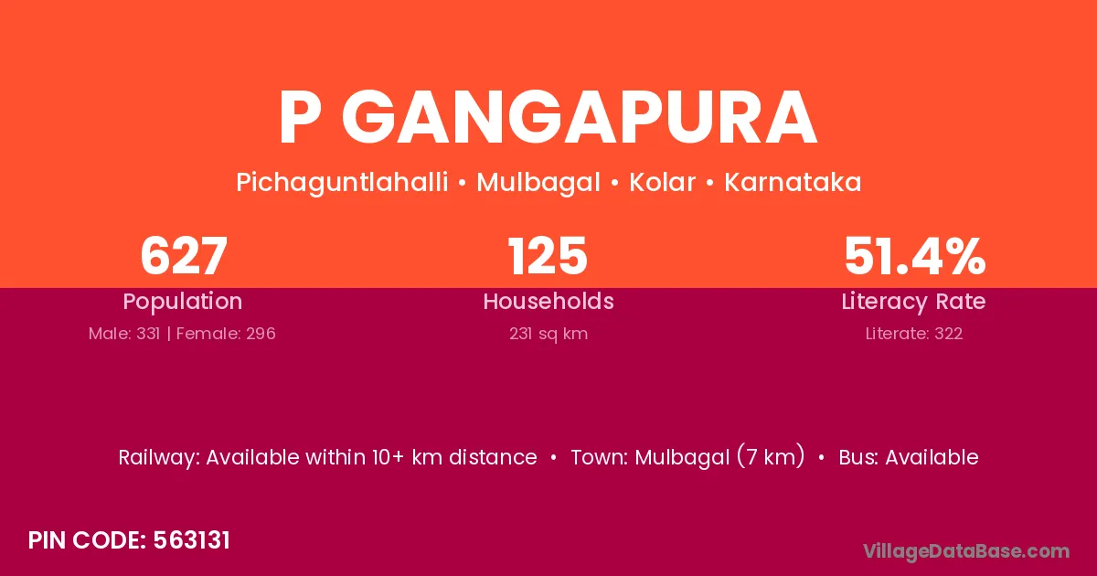 Mulbagal (7 km) is the nearest town to P Gangapura village for major economic activities and is located approximately 7 km away.