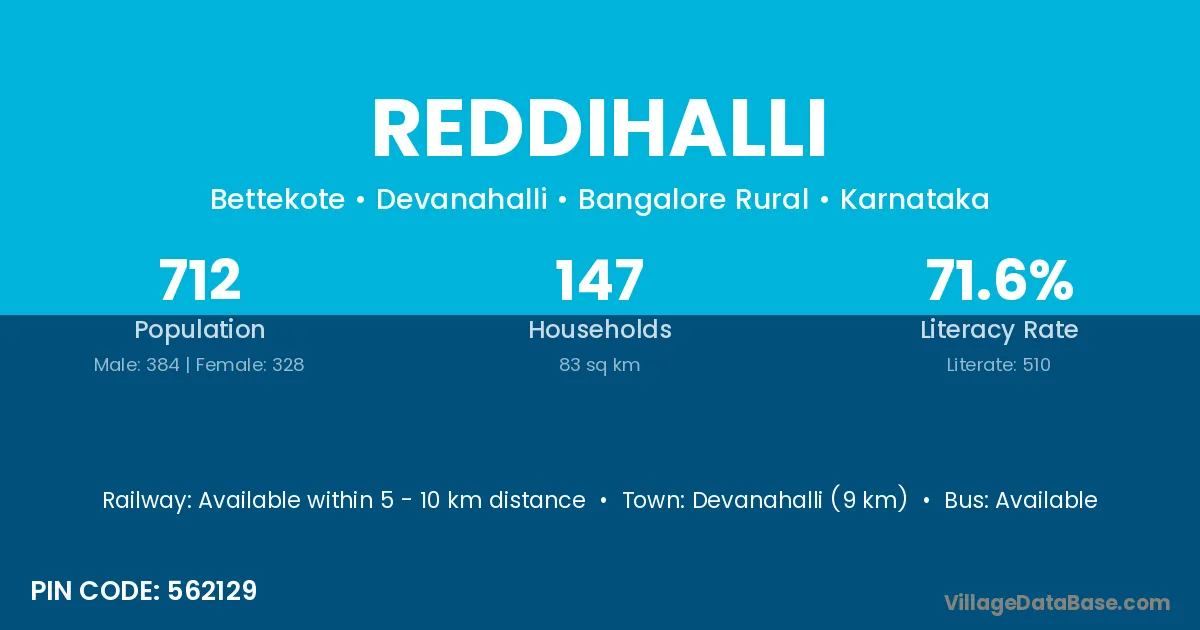 Mulbagal (11 km) is the nearest town to Reddihalli village for major economic activities and is located approximately 11 km away.