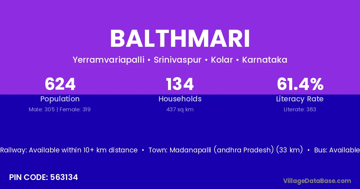 Madanapalli (andhra Pradesh) (33 km) is the nearest town to Balthmari village for major economic activities and is located approximately 33 km away.