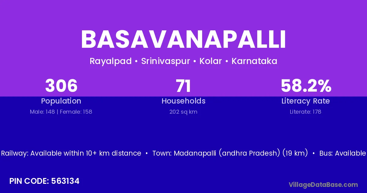 Basavanapalli village has a total population of 306 people, of which 148 are males and 158 are females.