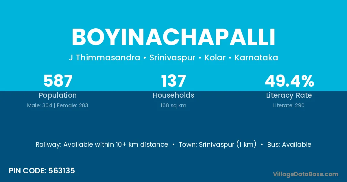 Srinivaspur (1 km) is the nearest town to Boyinachapalli village for major economic activities and is located approximately 1 km away.