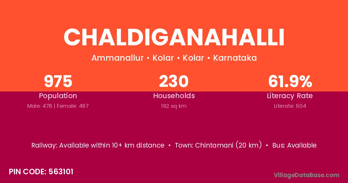 Srinivaspur (3 km) is the nearest town to Chaldiganahalli village for major economic activities and is located approximately 3 km away.
