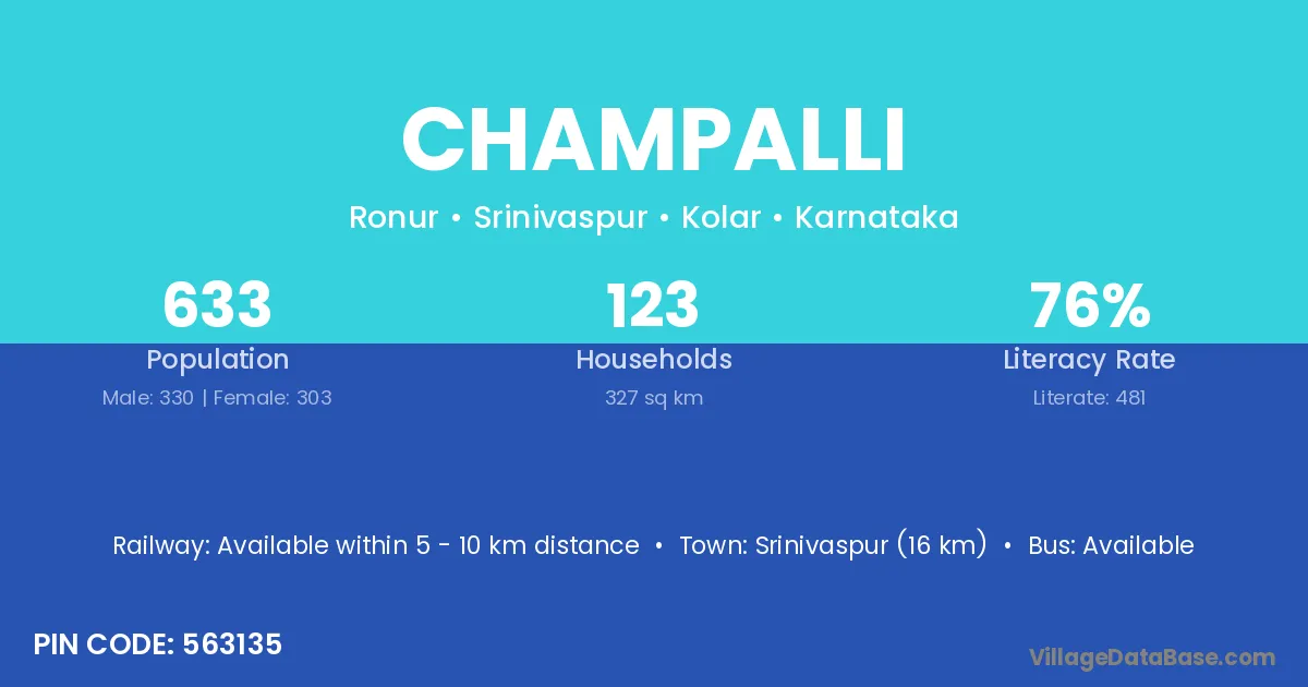 Srinivaspur (16 km) is the nearest town to Champalli village for major economic activities and is located approximately 16 km away.