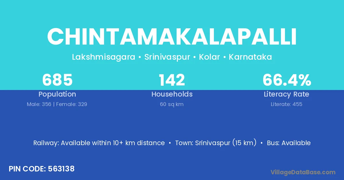 Srinivaspur (15 km) is the nearest town to Chintamakalapalli village for major economic activities and is located approximately 15 km away.