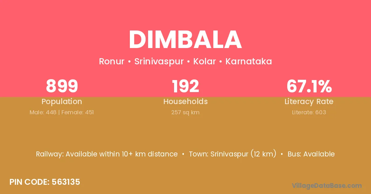 Srinivaspur (12 km) is the nearest town to Dimbala village for major economic activities and is located approximately 12 km away.