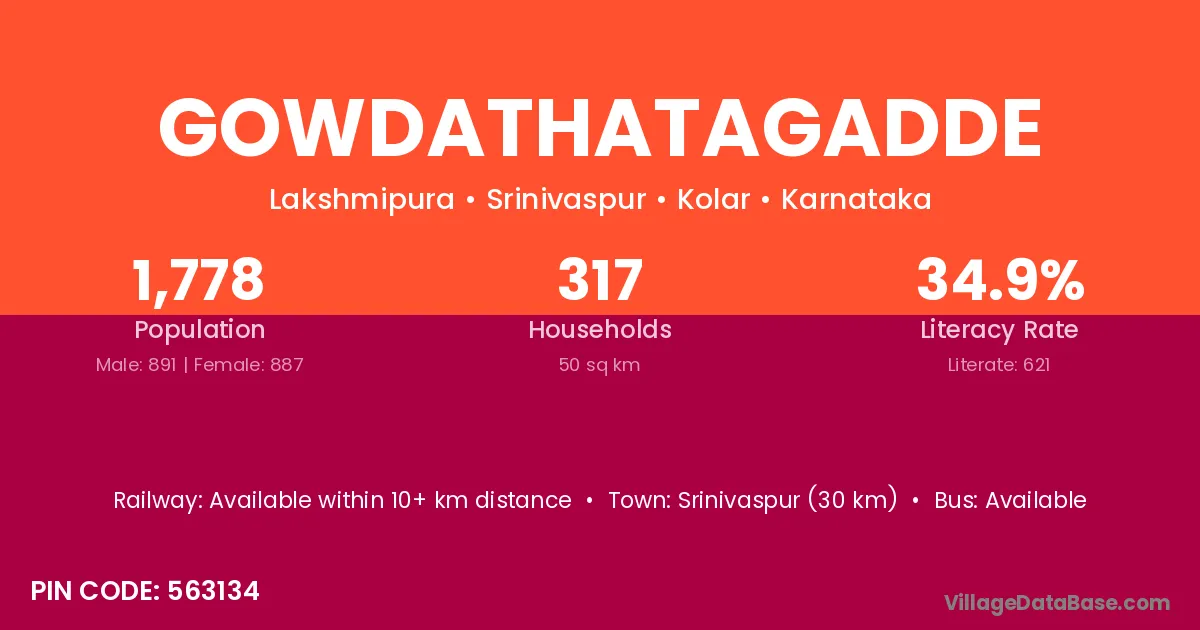 Srinivaspur (30 km) is the nearest town to Gowdathatagadde village for major economic activities and is located approximately 30 km away.