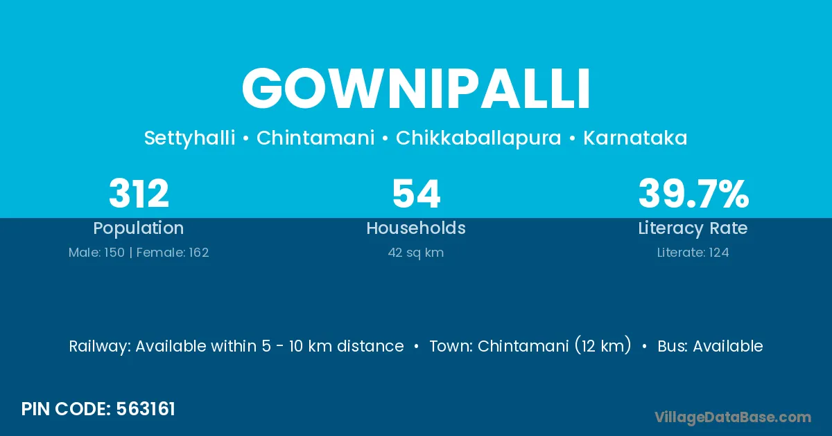 Kothakota(andhra Pradesh) (20 km) is the nearest town to Gownipalli village for major economic activities and is located approximately 20 km away.