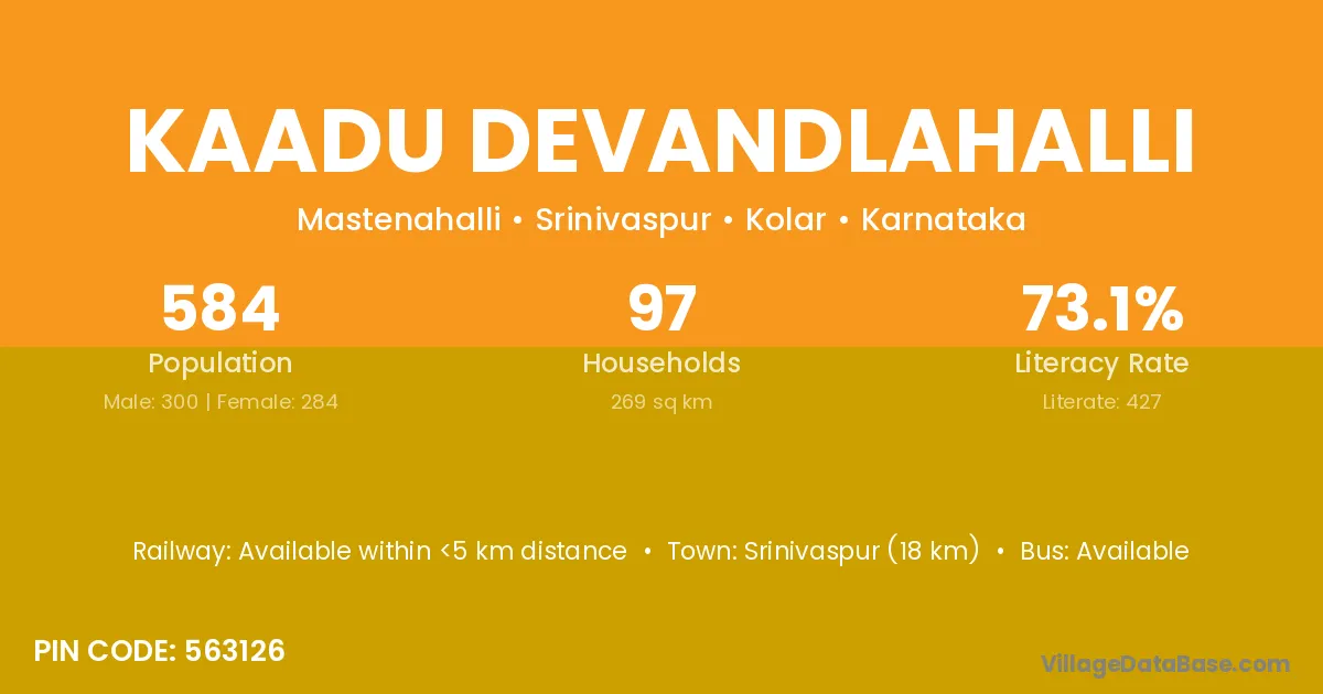 Srinivaspur (18 km) is the nearest town to Kaadu Devandlahalli village for major economic activities and is located approximately 18 km away.