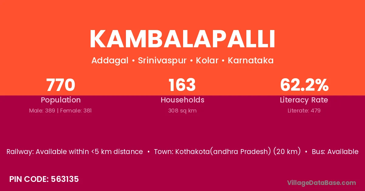Kambalapalli village has a total population of 770 people, of which 389 are males and 381 are females.