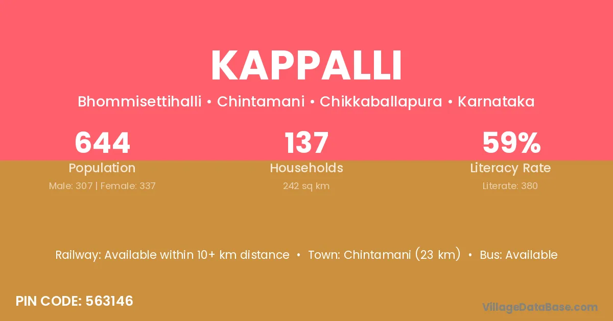 Srinivaspur (14 km) is the nearest town to Kappalli village for major economic activities and is located approximately 14 km away.