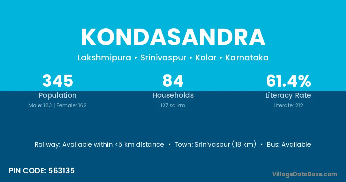 Srinivaspur (18 km) is the nearest town to Kondasandra village for major economic activities and is located approximately 18 km away.