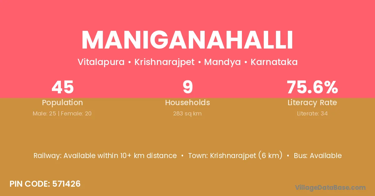 Srinivaspur (6 km) is the nearest town to Maniganahalli village for major economic activities and is located approximately 6 km away.