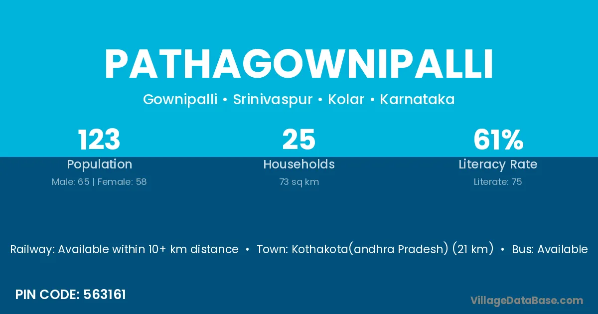 Kothakota(andhra Pradesh) (21 km) is the nearest town to Pathagownipalli village for major economic activities and is located approximately 21 km away.