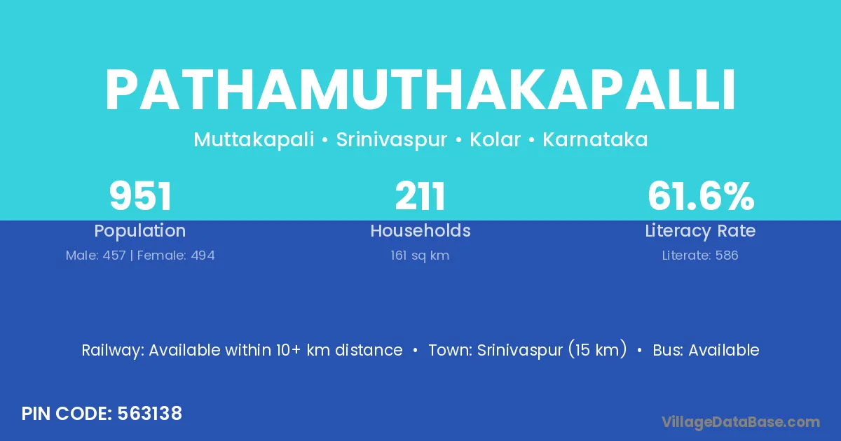 Srinivaspur (15 km) is the nearest town to Pathamuthakapalli village for major economic activities and is located approximately 15 km away.