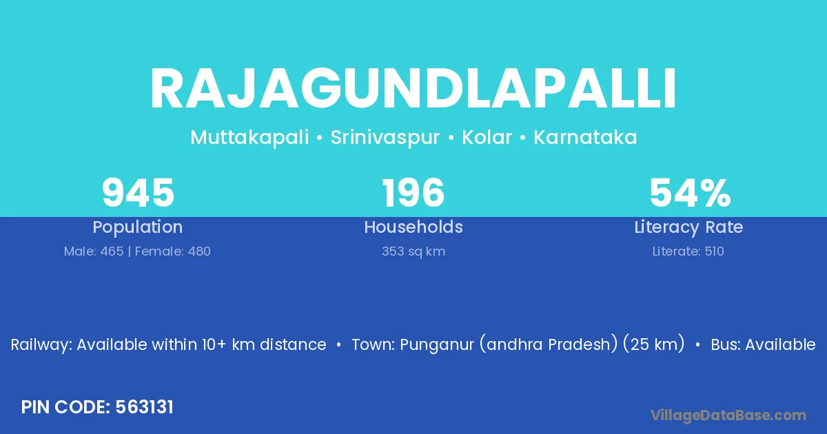 Punganur (andhra Pradesh) (25 km) is the nearest town to Rajagundlapalli village for major economic activities and is located approximately 25 km away.