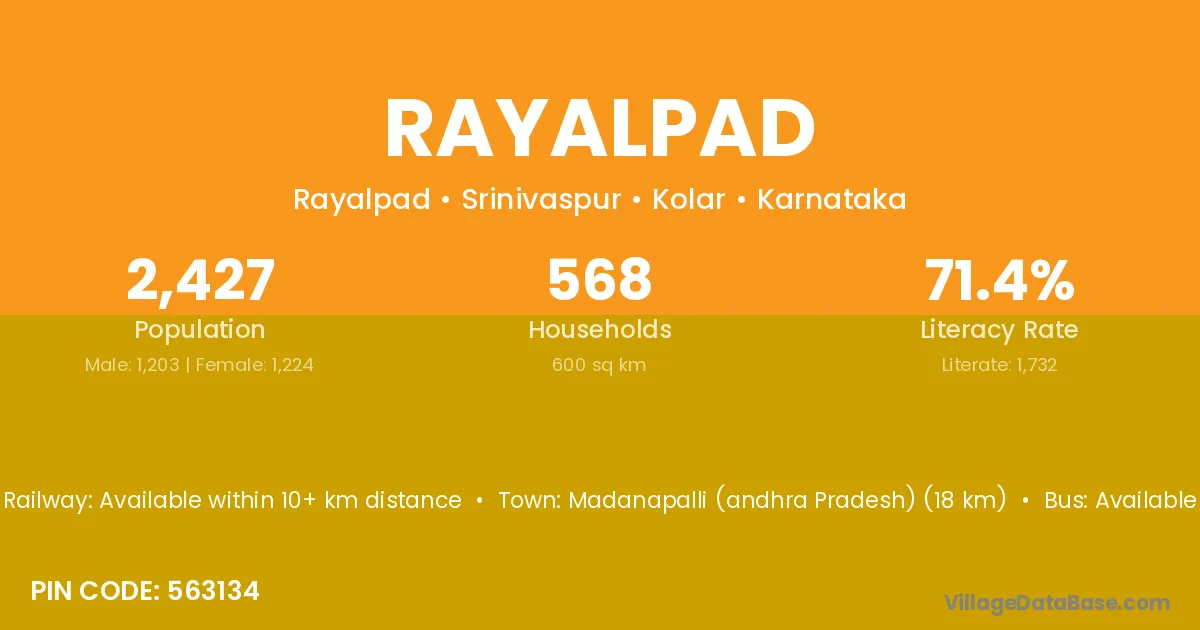 According to Census 2011 information, the village code of Rayalpad village is 563134.