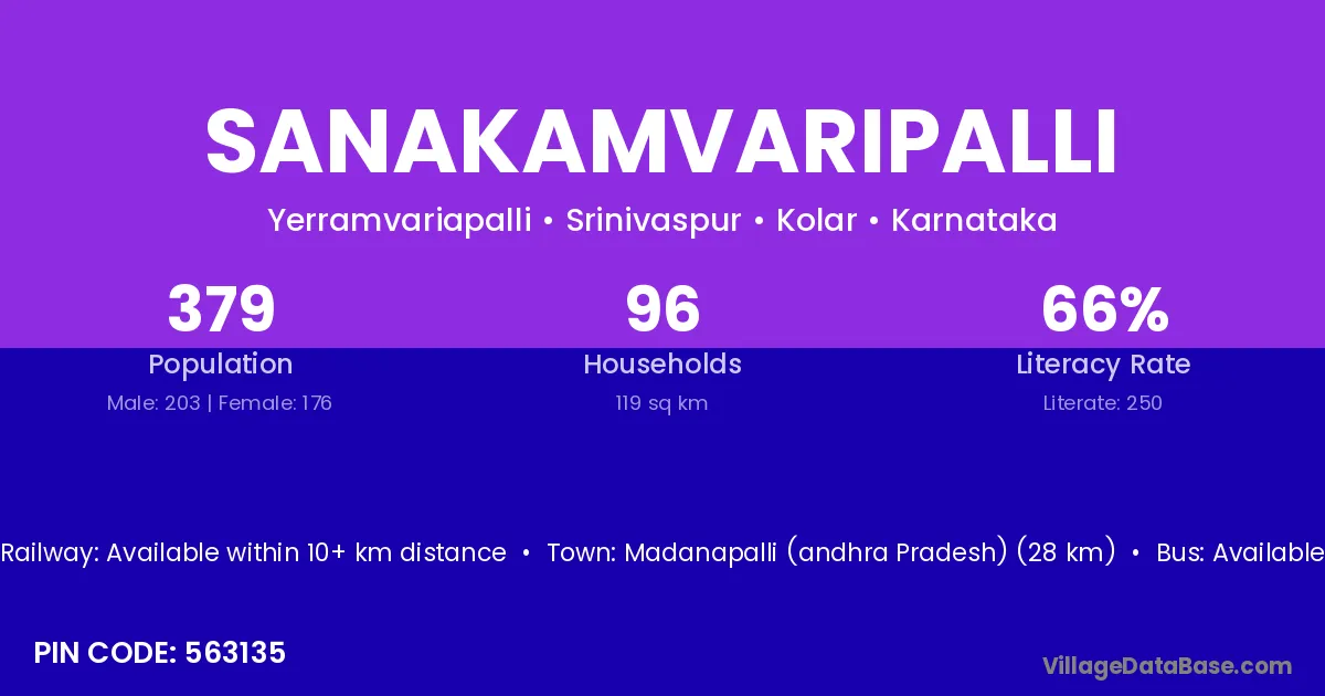 Madanapalli (andhra Pradesh) (28 km) is the nearest town to Sanakamvaripalli village for major economic activities and is located approximately 28 km away.