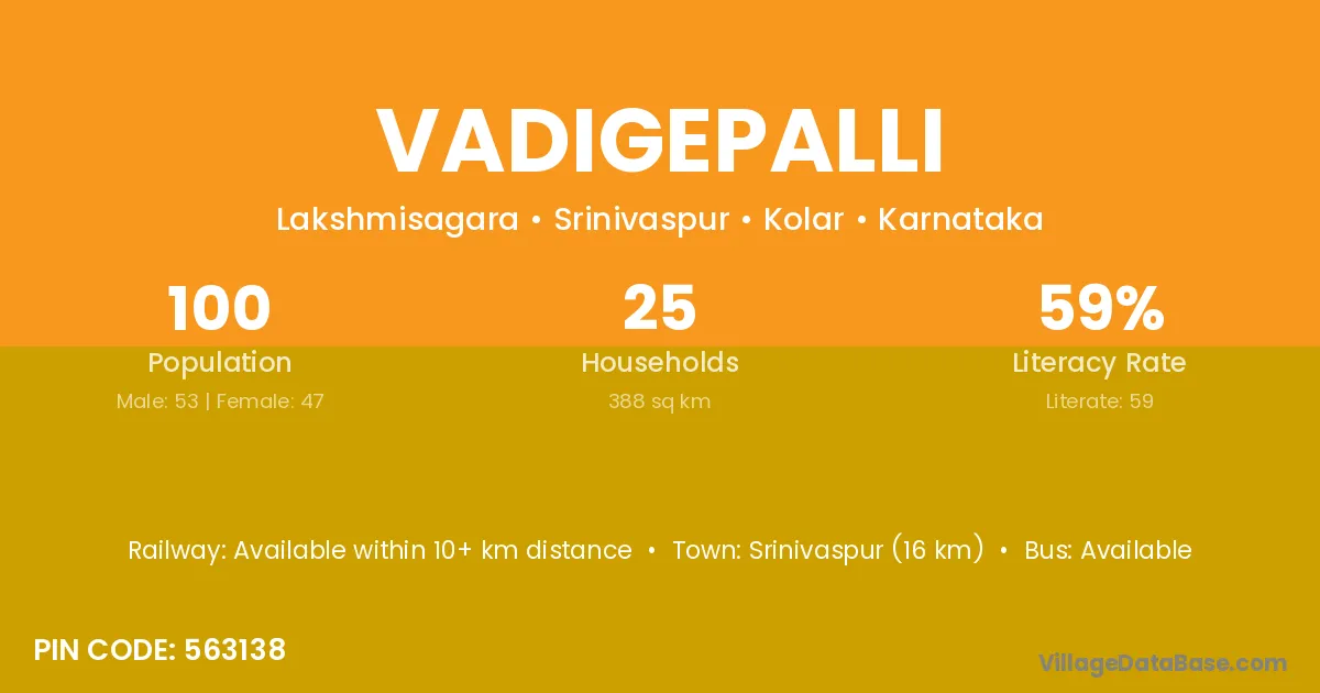 Srinivaspur (16 km) is the nearest town to Vadigepalli village for major economic activities and is located approximately 16 km away.