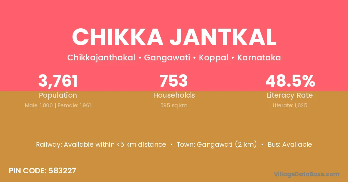 Gangawati (2 km) is the nearest town to Chikka Jantkal village for major economic activities and is located approximately 2 km away.