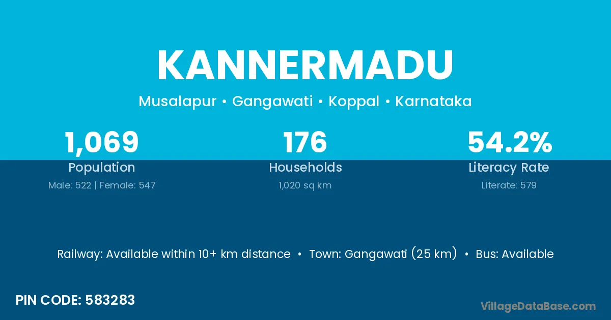 Gangawati (25 km) is the nearest town to Kannermadu village for major economic activities and is located approximately 25 km away.