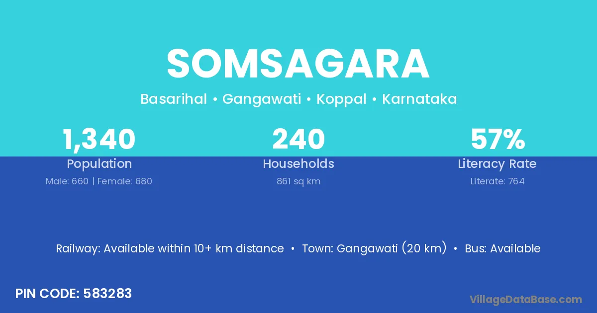 Gangawati (20 km) is the nearest town to Somsagara village for major economic activities and is located approximately 20 km away.