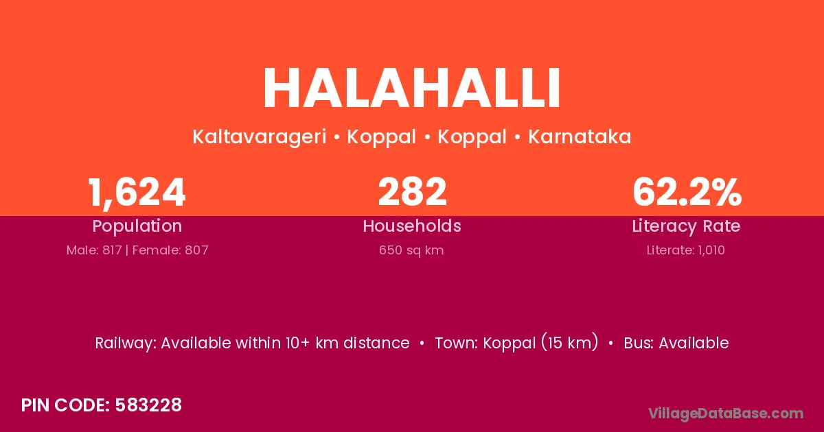 Koppal (15 km) is the nearest town to Halahalli village for major economic activities and is located approximately 15 km away.