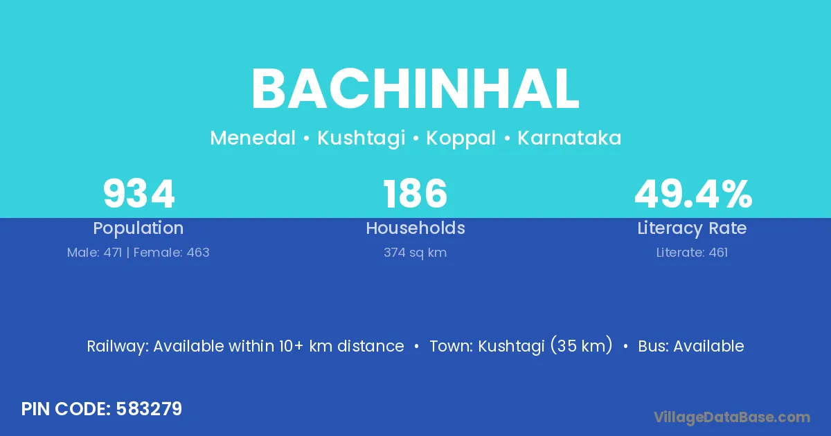 Kushtagi (35 km) is the nearest town to Bachinhal village for major economic activities and is located approximately 35 km away.