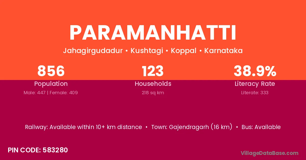 Paramanhatti village has a total population of 856 people, of which 447 are males and 409 are females.