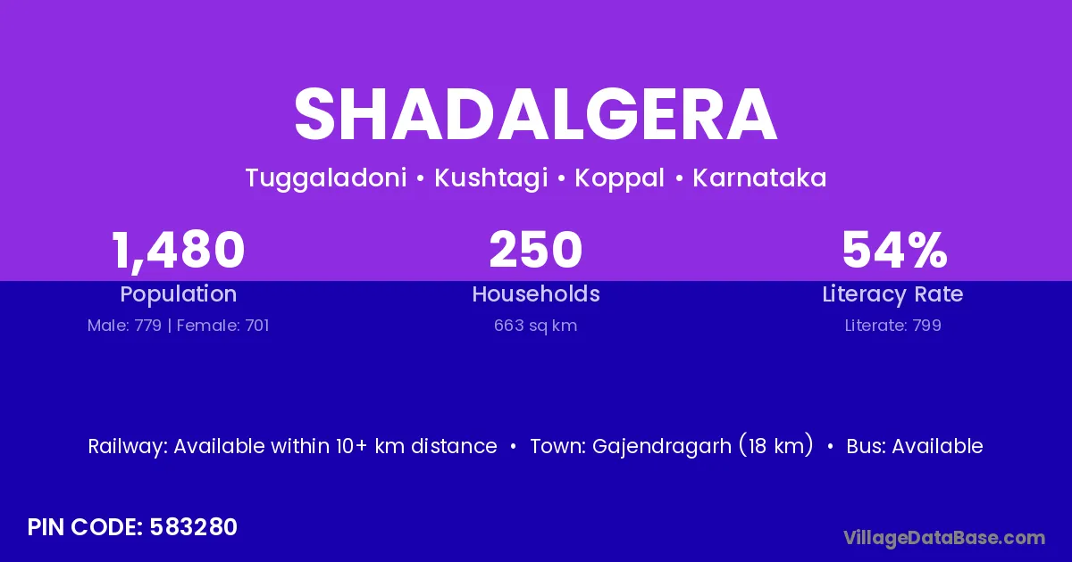 Shadalgera village has a total population of 1,480 people, of which 779 are males and 701 are females.