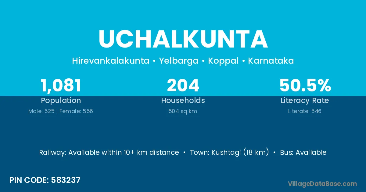 Kushtagi (18 km) is the nearest town to Uchalkunta village for major economic activities and is located approximately 18 km away.
