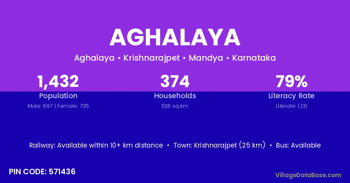 Krishnarajpet (25 km) is the nearest town to Aghalaya village for major economic activities and is located approximately 25 km away.