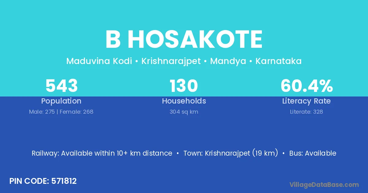 Krishnarajpet (19 km) is the nearest town to B Hosakote village for major economic activities and is located approximately 19 km away.