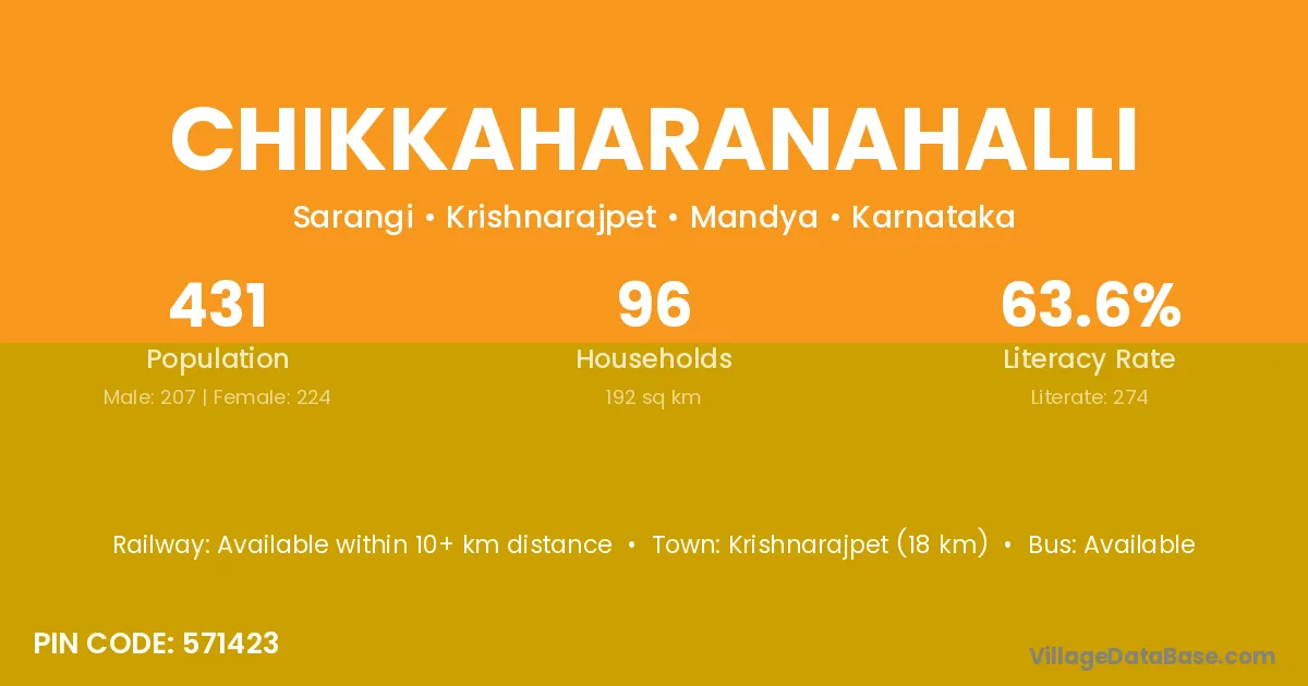 Chikkaharanahalli village has a total population of 431 people, of which 207 are males and 224 are females.